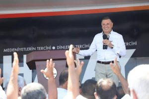 Kumlu’ya yapılan hizmetler ile ilgili bilgiler paylaşan Başkan Savaş, “15 adet sondaj kuyusu, 20.285 metre içme suyu hattı, 2246 metre kanalizasyon hattı, 3494 adet içme suyu arızası ve 4479 adet kanalizasyon arızası giderilmiş. Kumlu Arıtma Tesisi Projesi hazır. En kısa zamanda temelini atmış olacağız. Aynı zamanda içme suyu şebekesinin yapımına da bu sene içerisinde başlayacağız. 65 kilometrelik sathi kaplama, 39 kilometre beton asfalt, 215 bin metre kare parke taşı döşenmiş. 154 metre betonarme, duvar çalışması, 150 metre taş duvar, 14 adet mezarlık etrafı betonla çevrilmiş, 7 adet eğitim kurumuna destek, 7 adet de ibadethane tadilatına ve yapımına katkı sağlanmış. Bundan sonraki süreç içerisinde iki önemli adımımız var. Bu sene sonbaharda içme suyu şebekesine başlayacağız. Biz bereketli bir coğrafyada yaşıyoruz ama ovada bir tane arıtma tesisi yoktu. Tüm arıtılması gereken kirli sular tarlalarda sulama suyu olarak kullanılıyordu. İnşallah bundan kurtulacağız. 9 tane arıtma tesisimiz bitti. Kumlu’ya da yeni bir arıtma tesisini en kısa zamanda yapacağız.