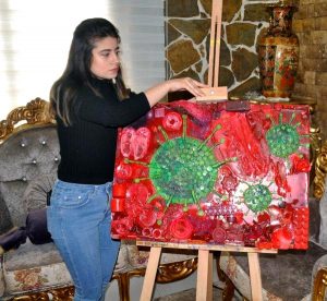 Reyhanlı ilçesinde uzun zamandır mozaik ve hurda sanatçısı babası Mervan Altınorak ile çeşitli heykeller yapan Dilara Altınorak, dünyayı etkisi altına alan ve Türkiye’de de görülen koronavirüs salgınını kullandığı plastik atıklarla resmetti. Altınorak, gündemi takip ederek koronavirüsün resmini yaparken, bir de mesaj verdi. Vatandaşlardan evlerinde kalmaları ve sosyal aktivitelerle meşgul olmalarını isteyen Altınorak, “Dünyayı etkisi altına alan ve ülkemizde de görülen koronavirüs eğitim, ulaşım gibi günlük yaşantımızda birçok şeyi etkiledi. Ben de evde kaldığım sürede koronavirüsün resmini yaparak ‘evde kalın’ mesajı vermek istedim” dedi.