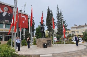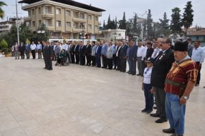Muhtarlar Derneği Başkanı Mustafa Sever’in belediye binası önündeki alanda Atatürk Anıtı’na çelenk sunumu ile başlayan törende saygı duruşunda bulunuldu ve İstiklal Marşı okundu.