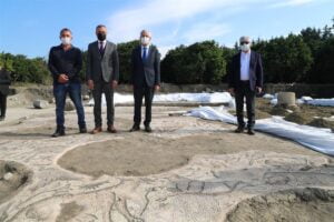 Yapılan incelemede Vali Rahmi Doğan’a Arsuz Kaymakamı Musa Sarı, Arsuz Belediye Başkanı Asaf Güven, Kazıdan Sorumlu Arkeolog Ömer Çelik’te eşlik etti.