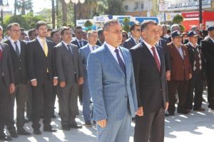 Belediye binası önündeki Atatürk Meydanında yapılan törene, Kaymakam Fatih Çobanoğlu, Belediye Başkanı Mehmet Hacıoğlu, Cumhuriyet Başsavcısı Osman Öztürk, 4. Hudut Bölük Komutanı P. Yüzbaşı Mehmet Göker, İlçe Emniyet Müdürü 2. Sınıf Emniyet Müdürü Nadir Örten, İlçe Jandarma Komutanı J. Yüzbaşı Abbas Çelik, Mülki İdare Amirleri, Asker ve Emniyet mensupları, siyasi parti temsilcileri ve vatandaşlar katıldı.