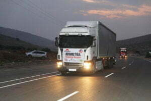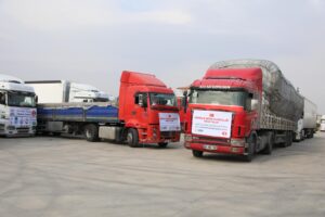 10 Aralık Dünya İnsan Hakları Günü’nde tüm Türkiye’den yola çıkarılan ve gıda, un, battaniye, yakacak, soba, hijyen paketi, kışlık kıyafet gibi malzemeleri taşıyan yardım TIR’ları gümrük işlemlerinin ardından Suriye’ye geçmeye başladı.