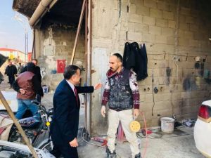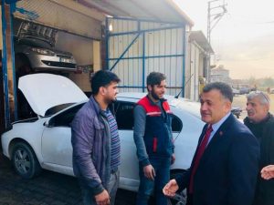 Hacıoğlu, çarşı ve sanayi esnafı ziyaretinde vatandaşlarla bir süre sohbet etti.