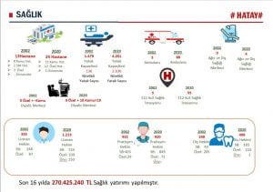 Son 18 yılda 270 milyon 425 bin 240 TL sağlık yatırımı yapıldığını belirten Yeloğlu, 2002 yılında Hatay’da 13 hastane bulunurken, 2020 yılında bu sayının 24’e yükseldiğini ifade etti.