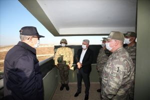 Suriye sınırının sıfır noktasındaki birliklerde incelemelerde bulunmak üzere Hatay’a gelen Milli Savunma Bakanı Hulusi Akar, Genel Kurmay Başkanı Org. Yaşar Güler, Kara Kuvvetleri Komutanı Org. Ümit Dündar Hatay Valisi Rahmi Doğan ile birlikte Şehit Er Hüseyin Koroç Hudut Karakolu ve 2’nci Ordu Taktik Komuta Merkezini ziyaret etti.
