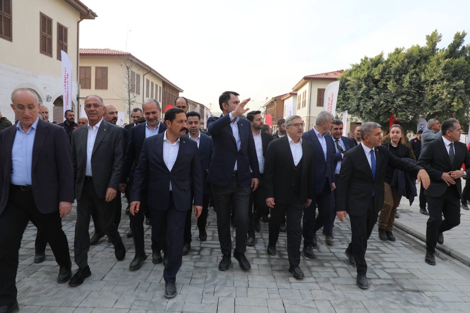Bir yandan deprem konutlarının sosyal donatılarıyla beraber tamamlandığını bir yandan da tarihi ihya ettiklerini vurgulayan Bakan Kurum, “Hatay’ın simgesi olan tarihi Uzun Çarşı’yı, Atatürk Caddesi, Kemalpaşa Caddesi ve dünyanın ilk ışıklandırılan caddesi olan Kurtuluş Caddesi’ni yeniden eski ihtişamına kavuşturuyoruz. Tarihi Meclis Binası ve Asi Nehri’nin iki yakası’nda başlattığımız çalışmalarımızı da 7 gün 24 saat çalışarak kararlılıkla sürdürüyoruz. Anadolu’nun ilk camisi olan Habib-i Neccar Camisini de inşallah önümüzdeki günlerde Sayın Cumhurbaşkanımızın da teşvikleriyle ibadete açmış olacağız.” ifadelerini kullandı.