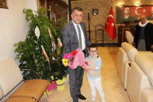 Belediye Başkanı Mehmet Hacıoğlu temsili Belediye Başkanlığı için makam koltuğunu, Bir İnci Rehabilitasyon Merkezi öğrencilerinden Mansur’a devretti.