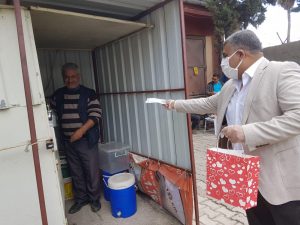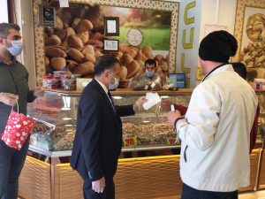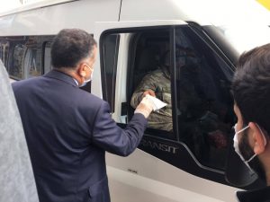 Esnaflarına ve vatandaşlara kendi elleri ile maske dağıtan Başkan Hacıoğlu dağıtım esnasında yaptığı açıklamada; “ Dünyayı tehdit eden Koronavirüsü (Kovid-19) ile ilgili tedbir çalışmalarımız doğrultusunda tüm hemşerilerimize, esnaflarımıza, cadde ve sokaklarımızda maskesiz olan herkese maskeleri kendi ellerimizle dağıtıyoruz. Ben insanlarımızı mümkünse evde olmaya, dışarda işleri varsa işlerini bitirdikten sonra süratle evlerine çekilmeleri noktasında da ikazlarda bulunuyoruz. İnşallah Dünyada ki bu Koronavirüsü illeti bir an önce son bulur. İnsanlarımız tekrar özlediği hayata kavuşur.