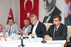 HBB Başkanı Öntürk, il genelinde sürdürülen yeniden ihya ve inşa çalışmalarının muhtarların taleplerine cevap verecek şekilde ilerlemesi amacıyla sürdürdüğü istişare toplantıları kapsamında Reyhanlılı muhtarlarla bir araya geldi.