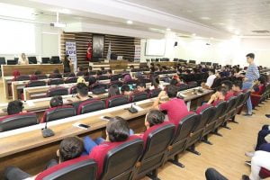 16 Ekim Çarşamba günü Büyükşehir Belediyesi Meclis Salonu’nda gerçekleştirilen eğitimde iş sağlığı ve güvenliği konusunda mevzuatlar, kanun, yönetmelikler ve uygulamalar hakkında bilgi veren uzmanlar, işveren ve işçinin iş kazalarını önlemedeki rolü, işverenin alması gereken tedbirler ve iş güvenliğinin denetlenmesi konularında stajyer öğrencilere önemli bilgiler aktardı.