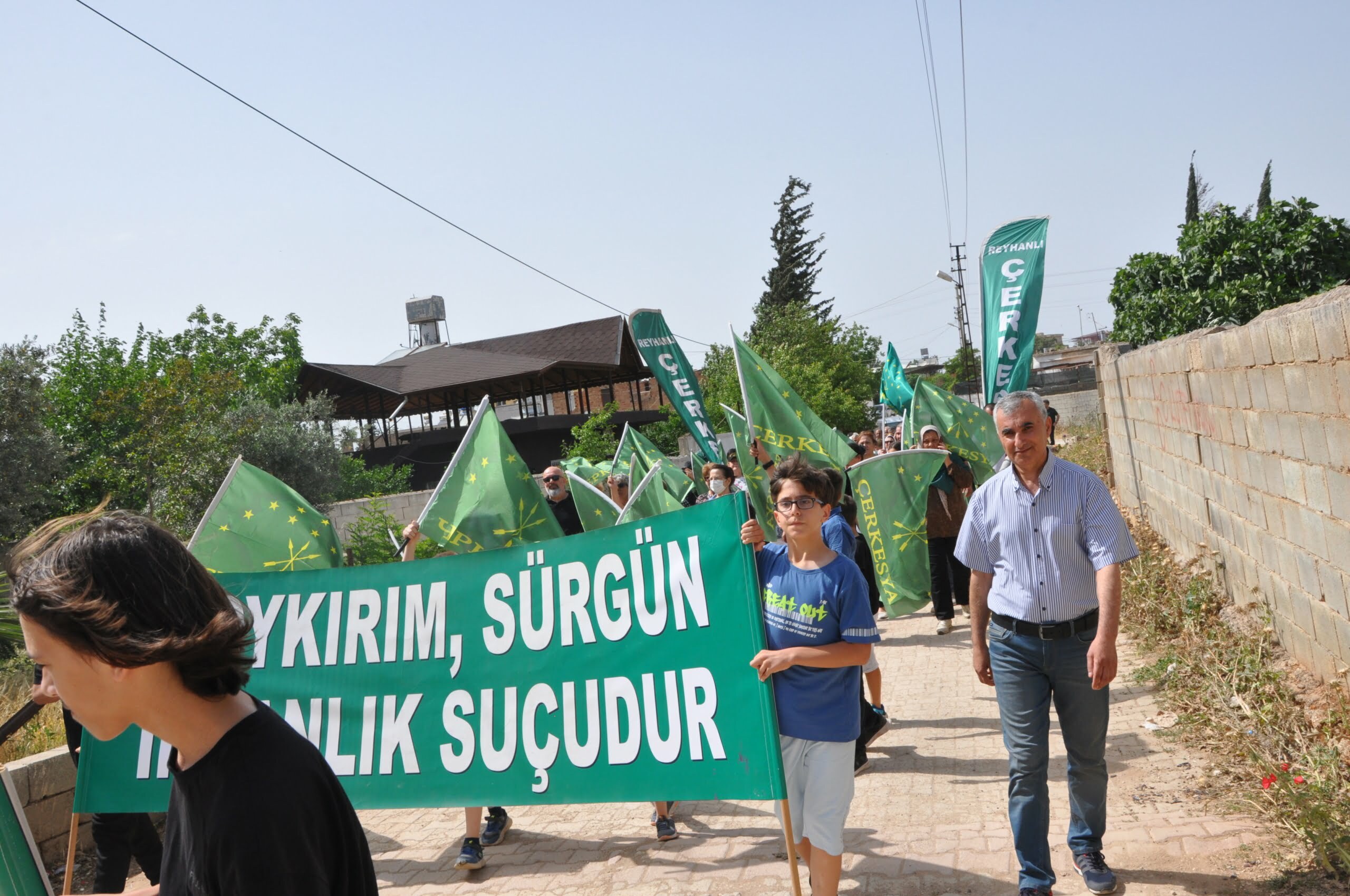 Hatay’ın Reyhanlı ilçesinde bulunan Çerkesler, anavatanlarından sürgün edilişlerinin 158. yıl dönümünde yürüyüşle protesto etti.