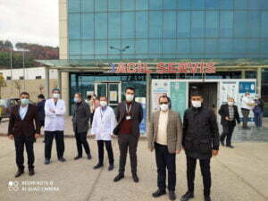 Hastane Yönetimi tarafından karşılanan İl Sağlık Müdürü ve beraberindeki heyet , hastanede yürütülen sağlık hizmetleri ve pandemi sürecinin işleyişi hakkında bilgiler aldıktan sonra hasta muayene ve kabul alanlarına geçti.
