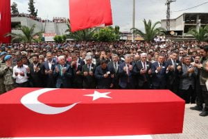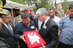 Henüz 24 yaşında ve bekar olan Şehit Can’ın tabutunun sarıldığı Türk Bayrağı, şehidin ailesini teselli ederek sabır dileyen Vali Doğan tarafından şehidin babası Abdullah Can’a verildi.