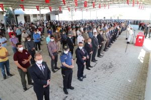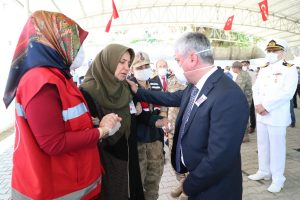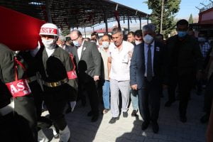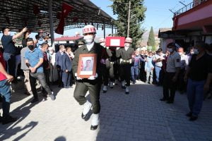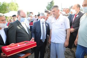 Henüz 21 yaşında ve bekâr olan Şehidimiz Piyade Er Mehmet Günay’ın tabutunun sarılı olduğu Türk Bayrağı, Vali Rahmi Doğan’ın Kültür ve Turizm Bakan Yardımcısı Serdar Çam ile birlikte teselli ettiği baba Hüseyin Günay’a sabır ve baş sağlığı temennileriyle teslim edildi.
