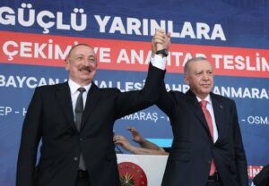 Cumhurbaşkanı Recep Tayyip Erdoğan, Azerbaycan Cumhurbaşkanı İlham Aliyev ile Kahramanmaraş’taki Azerbaycan Mahallesi’nde 250 Bininci Afet Konutu Anahtar Teslimi ve Kura Çekim Töreni’ne katıldı.