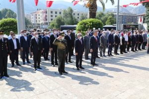 Törene Hatay Valisi Rahmi Doğan’ın yanı sıra, Garnizon Komutanı Vekili Albay Ümit Durmaz, Hatay Büyükşehir Belediye Başkanı Doç. Dr. Lütfü Savaş, Hatay Mustafa Kemal Üniversitesi Rektörü Prof. Dr. Hasan Kaya, Vali Yardımcıları Nursal Çakıroğlu ve Yusuf İzci, İlçe Kaymakamları, İl Jandarma Komutanı Albay Uğur Ertekin, İl Emniyet Müdürü Vedat Yavuz, Sahil Güvenlik Grup Komutanı Kıdemli Binbaşı Oğuz Emre Çiçek, İlçe Kaymakamları, İlçe Belediye Başkanları, kurum müdürleri, şehit ve gazi dernekleri temsilcileri katıldı.