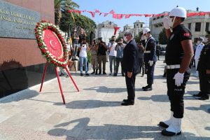 23 Temmuz 2020 Perşembe günü saat 09.30’da gerçekleşen törende ilk olarak Cumhuriyet Meydanı Atatürk Anıtı’na Hatay Valiliği, Garnizon Komutanlığı ve Büyükşehir Belediye Başkanlığı çelenklerini konuldu. Program, saygı duruşu ve İstiklal Marşı’nın okunmasının ardından Anıt Şeref Defteri’ni imzalayan Hatay Valisi Rahmi Doğan: