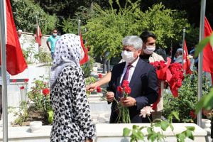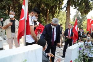 Tören, aynı gün saat 10.00’da Antakya Şehitliği’nde Vali Doğan ve il protokolü üyelerinin Şehitliği gezerek şehit kabirlerine karanfiller bırakmasıyla devam etti. Vatan, bayrak ve istiklal, uğrunda şehadete eren kahraman şehitlerimizin ruhu için Kuran-ı Kerim okunması ve şehitlerimizin ruhuna dualar edilmesinin ardından şehitlikteki program, sona erdi.