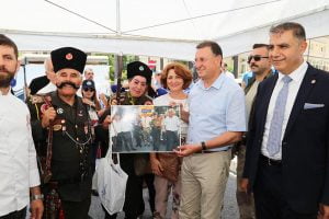 Hatay’ın hünerli elleri yemeklerini hazırlarken Antakya’nın yakma resim yerel sanatçılarından Zeynep-Naim Gülbol çifti de resim sergilerini vatandaşların beğenisine sundu.