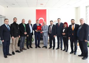 Ziyaretin sonunda Başkan Abdullah Temizyürek, Başkan Savaş’a Türk Bayrağı ve Kuran-ı Kerim hediye etti.