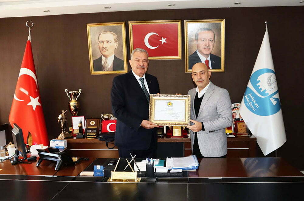 Yapılan konuşmanın ardından Hatay Gazeteciler Cemiyeti Başkanı Abdullah Temizyürek, nezaket ziyareti gerçekleştirdiği Antakya Belediye Başkanı İzzettin Yılmaz’a 10 Ocak Çalışan Gazeteciler Günü’nde basın mensuplarına ve HGC’ye gösterdiği ilgiden dolayı bir Teşekkür Belgesi takdim etti.