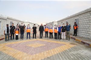 İçişleri Bakanı Soylu, Suriye’nin İdlib kentinde, Esed rejimi ve destekçilerinin saldırılarından kaçan siviller için yapılan briket evlerde incelemede bulundu.