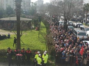 Törene, İçişleri Bakanı Süleyman Soylu’nun yanı sıra kent protokolü ve binlerce vatandaş katıldı. Tören alanının etrafındaki evlere de Türk bayraklarının asıldığı görülürken bazı vatandaşlar evlerinden töreni takip etti.