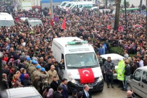 Suriye’nin İdlib kentinde rejim güçlerince düzenlenen hava saldırısında 34 arkadaşı ile birlikte şehit olan Teğmen Mustafa Bayrakdar’ın cenazesi memleketi Hatay’da gözyaşları arasında toprağa verildi. Şehidin cenazesine binlerce kişi katıldı.