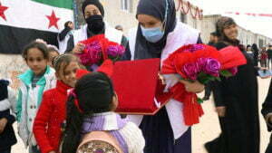 Türkiye Diyanet Vakfı (TDV) ve Umuda Koşanlar Derneği işbirliği ile, Suriye’nin kuzeybatısındaki İdlib kentinde inşası  tamamlanan 100 briket evi  ihtiyaç sahibi ailelere teslim etti.