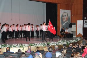 Antakya Anadolu Lisesi Edebiyat Öğretmeni Mehmet Yetim’in ‘’Hakk’ın sesi Mehmet Akif Ersoy’un hayatı ve eserleri’’ ile ilgili yaptığı sunumun ardından Antakya Anadolu Lisesi Öğrencileri tarafından hazırlanan ‘’Geçmişten Günümüze İstiklal Marşı’’ Oratoryosu ile program devam etti.