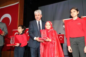 Daha sonra Vali Rahmi Doğan tarafından Hatay genelinde Ortaokullar arasında düzenlenen İstiklal Marşı’nı güzel okuma yarışmasında dereceye giren öğrencilerden Hatay 1’ncisi Reyhanlı TOKİ İstiklal Ortaokulu öğrencisi Nazar Bozkaya, Hatay 2’ncisi Dörtyol Nene Hatun İmam Ortaokulu Öğrencisi Reyyan Eser ve Hatay 3’üncüsü Defne Rende Ortaokulu öğrencisi Medine Büşra Aydın’a plaket vermesiyle program sona erdi.