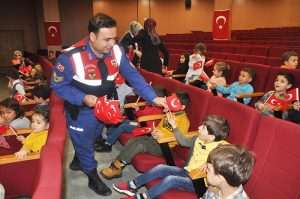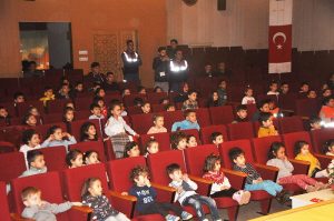 Reyhanlı İlçe Jandarma Komutanlığı Trafik Tim ekibi ve Hatay Büyükşehir Belediyesi tiyatro birimi işbirliği ile miniklere tiyatro ile trafik eğitimi verildi.