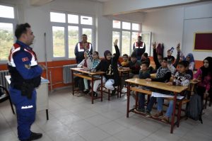 Reyhanlı İlçe Jandarma Komutanlığı Trafik ekipleri Güverada Mahallesi’ndeki ilkokulda trafik köşesi yaptı. Daha sonra da öğrencilere, emniyet kemeri kullanılması, trafik kurallarına uyulması ve araç kullanılırken telefonla konuşulmaması ile çeşitli trafik kurallarını içeren eğitim verdi.
