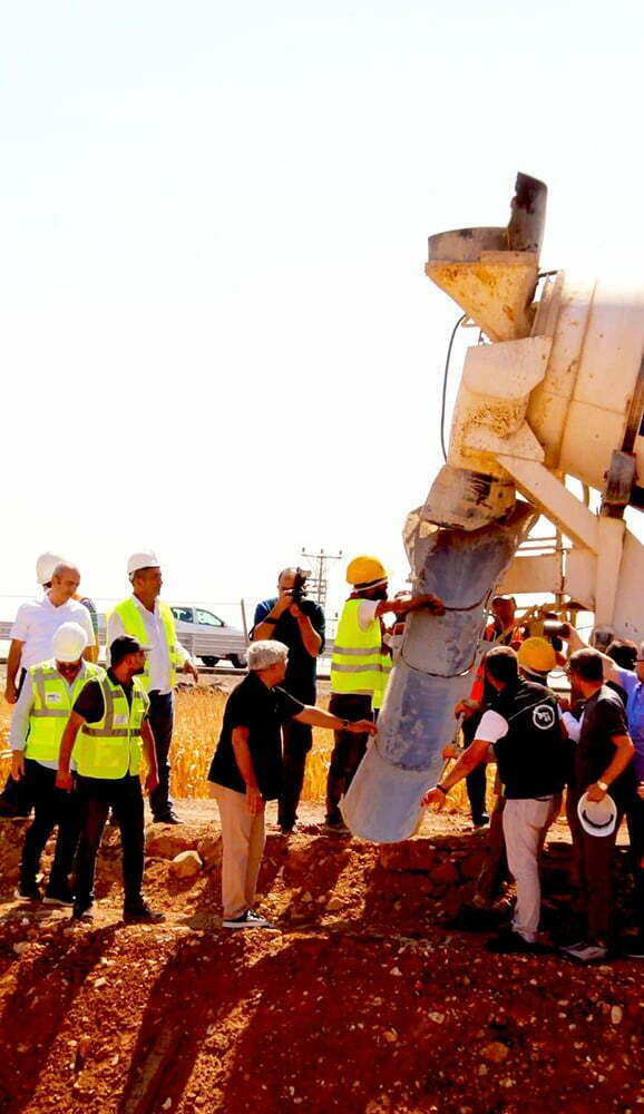 Reyhanlı Barajına su getirecek olan 36 km uzunluğundaki Karasu Derivasyon kanalının kaplama çalışmalarını takip eden heyet, daha sonra kanalın ilk harcını birlikte döktüler. Heyet, T2 tünelinin kaplama çalışmalarınıda izlediler.