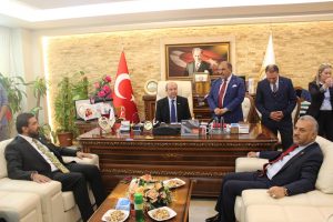 Hatay’daki ziyaretleri kapsamında Reyhanlı’ya gelen Tatar, önce belediyeyi ziyaret etti. AK Parti Hatay Milletvekili Hüseyin Şanverdi, KKTC Milletvekili Bertan Zaroğlu, Belediye Başkanı Mehmet Hacıoğlu, Kaymakam Ali Candan, Cilvegözü Mülki Amiri Vali yardımcısı Salih Altun, belediye meclis üyeleri tarafından karşılandı.