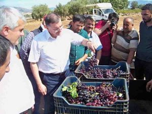HBB Başkanı Lütfü SAVAŞ, üzüm üreticileriyle bir araya gelerek , üreticilerin sorunlarını dinledi.