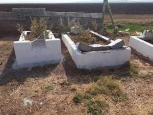 Reyhanlı’da kimliği belirsiz kişi yada kişiler Asri Mezarlığında bulunan mezarları, mezar taşlarını tahrip ettiler.