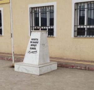 İlçedeki Osman Gazi Lisesi’nin bahçesinde bulunan Atatürk büstüne, kimliği belirsiz kişi ya da kişiler saldırdı. ‘Hayatta en hakiki mürşit ilimdir’ yazısının olduğu kaidedeki büst parçalandı.