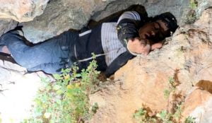 Reyhanlı ilçesinde, kaçak yollarla sınırı geçerken kayalıklara düşüp sıkışan Suriyeli genç, kurtarıldı.