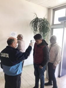 Görevlendirilen zabıta ekipleri, belediyeye giriş yapan tüm personel ve vatandaşın elektronik ateş ölçerle vücut sıcaklıklarını ölçtü. Kontrol yapan zabıtalar, giriş yapanların vücut sıcaklıklarının 38 derecenin üstünde olup olmadığını kontrol etti. Kontroller esnasında normal değerlerin üzerinde vücut sıcaklığı tespit edilirse, karantina önlemlerinin alınması için sağlık birimleriyle iletişim sağlanacak.