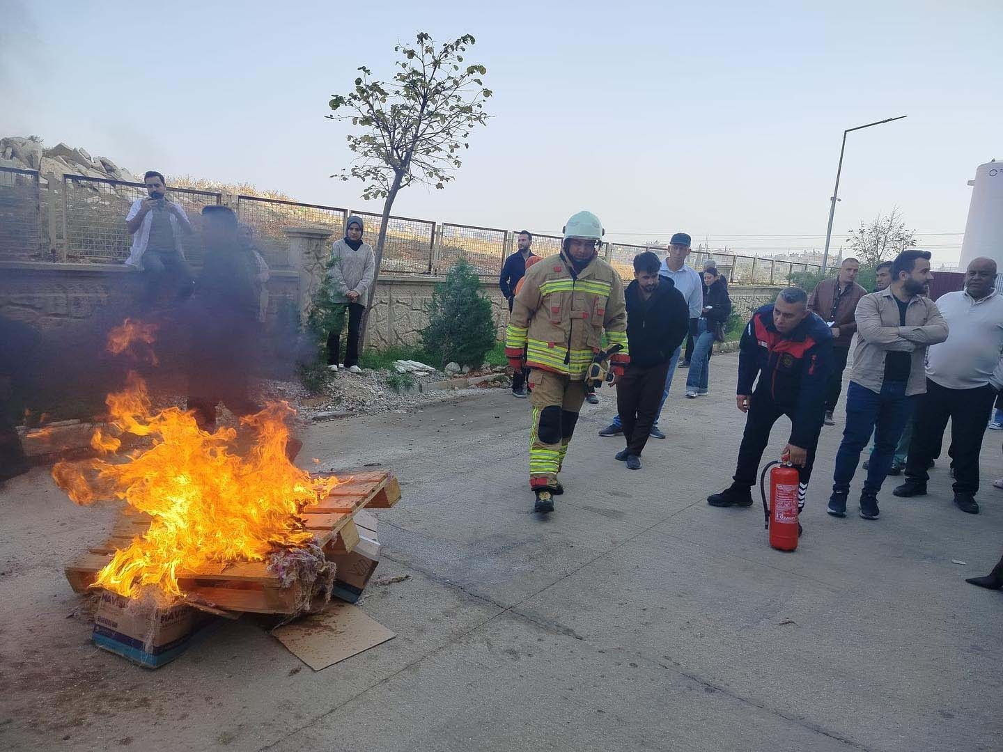 Eğitim sürecinde, olası yangın durumlarında izlenmesi gereken adımlar, tahliye prosedürleri, yangın söndürme cihazlarının doğru ve etkin kullanımı gibi konularda detaylı bilgilendirme yapıldı.