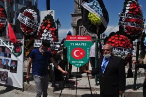 Korona virüs salgını nedeniyle kısıtlı olarak yapılan anma töreninde, 11 Mayıs şehitlerinin yakınları dernek binasından hareket ederek 11 Mayıs Şehitler Anıtı’na geldiler. Törene katılanlar koronavirüs tedbirleri kapsamında sosyal mesafeyi dikkate aldı.