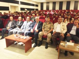 Halk Eğitim Merkezi Cemil Meriç Konferans salonunda düzenlenen törene Kaymakam Fatih Çobanoğlu, CHP Hatay Milletvekili İsmet Tokdemir, Belediye Başkanı Mehmet Çüter, İlçe Jandarma komutanı Abbas Çelik, İlçe Emniyet Müdürü Nadir Örten, HESOB Başkanı Kadir Teksöz, HESOB yetilileri, STK temsilcileri, kurum amirleri, vatandaşlar AHİ Evran Mesleki ve Teknik Anadolu Lisesi öğrencileri katıldı.