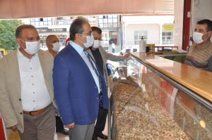 Kaymakam Ali Candan, Belediye Başkanı Mehmet Hacıoğlu, Emniyet Müdürü Ali Çolak, TSO Başkanı Necmettin Zaroğlu ve Jandarma Komutanı ile STK ve Kızılay başkanlarının katıldığı denetimde iş yerleri ziyaret edildi.
