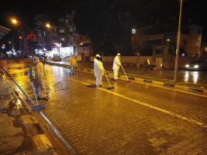 Hatay Valisi Rahmi Doğan yaptığı açıklamada, “Korona virüs (Kovid-19) salgınından vatandaşlarımızı korumak ve salgının yayılmasını engellemek için önlemler alıyoruz. Belediye ekiplerimizle birlikte trafiğe kapattığımız caddelerde dezenfekte çalışmaları yapıyoruz”