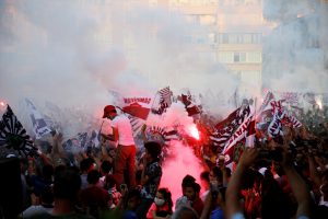 Gecenin ilerleyen saatlerinde olmasına rağmen takımlarının Adana’dan dönüşünü bekleyen taraftarlar, Cumhuriyet Meydanı’nda toplandı. Hatayspor’lu futbolcuların, teknik heyetin ve yönetiminin konvoy eşliğinde gelmesi ile birlikte meşaleler yakarak tezahüratta bulundular.