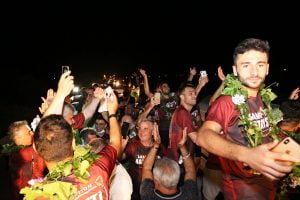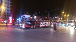 Lig’de uzun süre lider konumda bulunan Hatayspor, Adanaspor’u 2-1 yenerek ligin bitimine 1 hafta kala şampiyonluğu ilan etti. Cumhuriyet Meydanı’nda toplanan Hatayspor’lu taraftarlar meşaleler yakarak 53 yıl sonra gelen Süper Lig sevincini doyasıya yaşadılar. Tezahüratlarda bulunarak, coşku yaşayan taraftarlar, gönüllerince eğlendi.