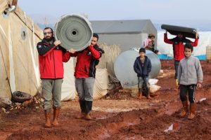 Geçtiğimiz hafta Suriye’nin İdlib kentinde başlayan şiddetli yağışın sele dönüşmesiyle çadırsız kalan sivillere İHH ve Bursa Fetih-Der tarafından insani yardım malzemesi ulaştırıldı.