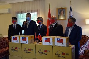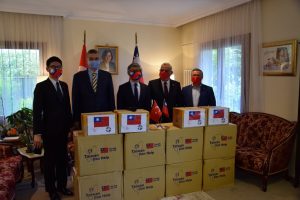 Kovit-19’la mücadele kapsamında Tayvan Temsilcisi Yaser Tai-Hsiang CHENG nezdinde, Tayvan halkı tarafından Türkiye’ye 100.000 adet cerrahi maske, 4.500 eldiven ve 1.100 şeffaf siper gönderildi.
