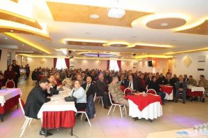 Toplantıda bir konuşma yapan Vali Doğan, ‘’Bu toplantılar sizlerle tanışmama vesile olduğu için benim için çok kıymetli. Bugün Beyazid-i Bestami Hazretlerinin topraklarında olmaktan gurur duyuyorum. Bir taraftan ilçeleri tanıyoruz, bir taraftan kumu kurumlarının yürüyen işlerini takip ediyoruz, bir taraftan da Afrin bölgesindeki faaliyetleri düzenliyoruz. Bu coğrafya çok kıymetli Medeniyetlerin beşiği bin yıldır her dinden ve mezhepten insanlar bu topraklarda huzur içinde yaşamışlar. Gerek Fırat Kalkanı gerekse Zeytindalı Harekatı olsun kontrol altına alınan bölgelerde güvenlik anlamında yaptığımız çalışmaların yanı sıra altyapı anlamında yaptığımız çalışmaların yanı sıra diğer sektörler anlamında ciddi çalışmalar yürütüyoruz. Basından da takip ettiğiniz gibi Sayın Cumhurbaşkanımızın talimatları doğrultusunda yapılan hazırlıklarla Türkiye Cumhuriyeti Devletine karşı kurşun sıkan terör örgütlerine karşı birtakım operasyonlar planlanmaktadır. 2011 yılında Suriye’de çıkan krizden etkilenen illerden birisi de Hatay’dır. Bu kadar Suriyeli misafire ev sahipliği yapıyor ve günlük hayatına da devam ediyor. Bu büyük bir meziyettir. Hatay Suriye krizini yönetirken ayakta durabilen, aynı zamanda bu ülke için katma değer üretebilen bir şehirdir. Bu bizim ne kadar büyük bir millet olduğumuzun da göstergesidir. Dolayısıyla biz ülke olarak ekonomik anlamda güçlü hale gelirsek hem kendi milletimize hem de gönül coğrafyamızda bulunan bu insanlara yardımcı oluruz. Fedakarca çalışmamız gerekiyor. Tarımıyla, ekonomisiyle turizmiyle çok büyük bir potansiyele sahip Türkiye giderek büyüyecek ve güçlenecektir. Bu milletin feraseti gerçekten de yüksektir. En kritik zamanlarda bu milletin nasıl birbirine kenetlenerek zor zamanları atlattığını hep birlikte görüyoruz. Bu sıkıntılı süreci de hep birlikte atlatmak üzereyiz.” dedi